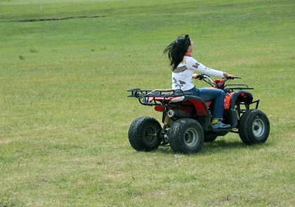 ? ? ? ?騎車草地摩托領(lǐng)略草原風光,別有一番風味。在領(lǐng)略大草原秀美景色的同時還可以體驗四輪越野草地摩托車, 容易駕駛,沒開過摩托車或汽車的你也可以,剎車、油門就這么的簡單,當駕著它在草原上飛馳,一掃繁重的工作和緊張的節(jié)奏,藍天白云下,牛羊在悠然地散步,駿馬奔馳起來,牧民們揮舞長鞭,引吭高歌,那極具張力的歌聲充滿著自豪和喜悅,駕駛著四輪越野摩托,在草原上風馳電掣地奔馳著,真是暢快淋漓!