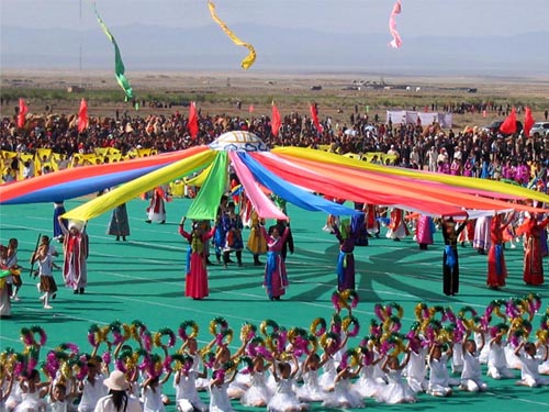 ? ? ? ?那達(dá)慕是中國蒙古族人民具有鮮明民族特色的傳統(tǒng)活動,也是蒙古族人民喜愛的一種傳統(tǒng)體育活動形式?!澳沁_(dá)慕”是蒙古語的譯音,不但譯為“娛樂、游戲”,還可以表示豐收的喜悅之情。每年農(nóng)歷六月初四(多在草綠花紅、羊肥馬壯的陽歷七、八月)開始的那達(dá)慕,是草原上一年一度的傳統(tǒng)盛會。