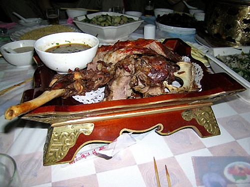 “手把羊肉”是內(nèi)蒙古著名的民族傳統(tǒng)菜。用羊肉烹制而成,因羊肉塊大,就餐時須用撕而食,故得名。極具民族特色,醇香味美。